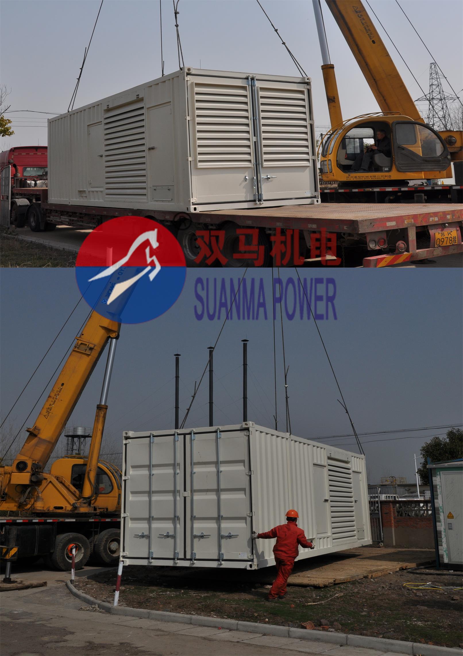 中石油江苏油田在我公司订购1000kw帕金斯柴油发电机组1台,机组采用perkins(4012-46twg2a)配上海马拉松电机,因长期使用与户外,采用高强度集装箱式外罩,更有效的降低噪音和方便移动,整机组带有上起吊功能,今天机组达到安装现场,我公司特派工程师赶往现场指导安装,调试及培训。