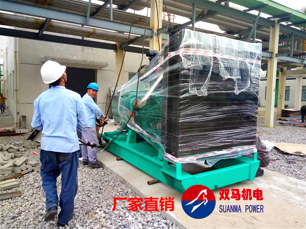 今日,一台常用600kw尺寸为3600*1700*1950mm,重量为4500kg的上海乾能柴油发电机组已到达客户所在地,目前正在卸车就位,等待现场调试。这台600kw上海乾能柴油发电机组因为是放在室内使用,所以购买的开架式机组,室内安装排烟管道,保证机组使用环境的安全及整洁。