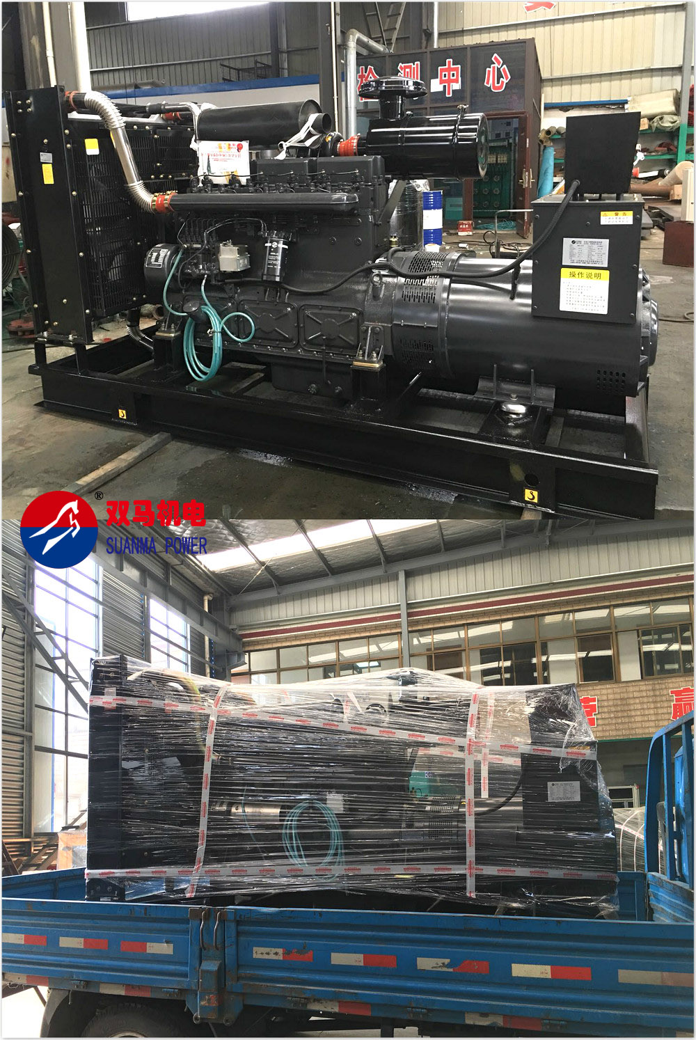 今日,一台外表颜色为黑色的上海申动300kw柴油发电机组今日在我厂生产完成,目前已经打包装车即将发往客户所在地。这台备用功率达到300kw的上海申动柴油发电机组柴油机最大功率能够达到310kw,机组配有液晶显示屏带自保护功能。